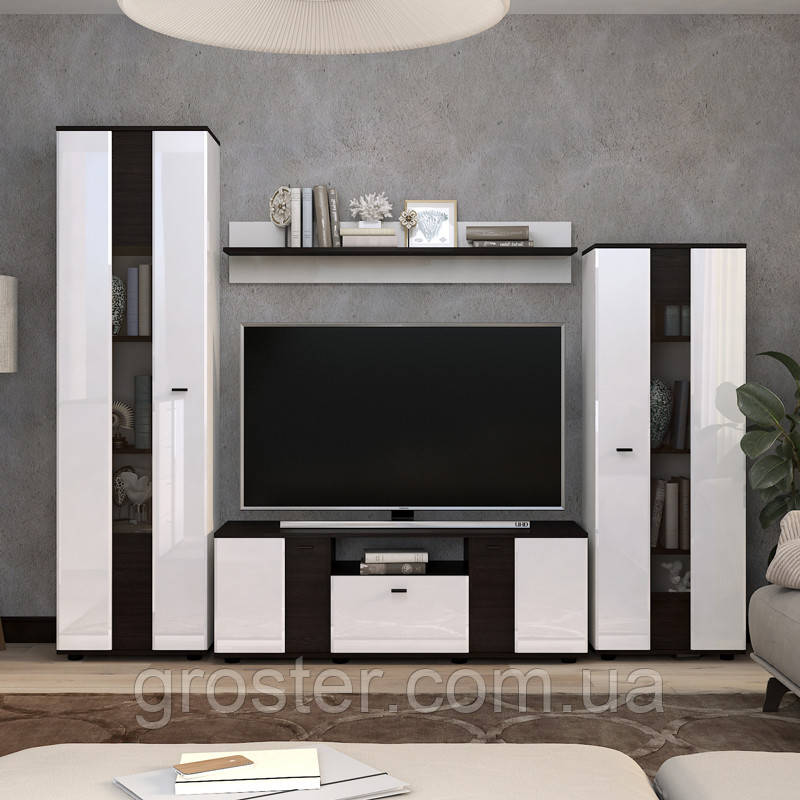 Вітальня Марс - стане справжнім акцентом у кімнаті. Чудове поєднання кольорів дасть змогу вибрати вітальню, яка поєднуватиметься з іншими меблями. На ваш вибір конструстне поєднання темного кольору Венге магія й ідеально глянсового Білого. Для сучасних інтер'єрів у мінімалістичному стилі можна вибрати вітальню у світлих тонах, поєднуючи Дуб сонома з білим.