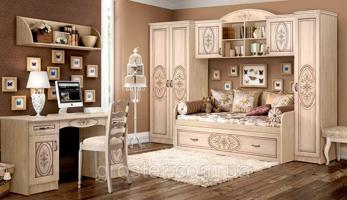 Модульна система Василиса — це величезна меблева система, яка виготовлена в розкішному королівському стилі. Велика кількість і різноманітність предметів, які входять до комплекту, дадуть змогу створити відповідну саме Вам за розміром спальню, дитячу, підліткову або будуар. Патіновані фасади, прикрашені округлими медальйонами, такі ж овальні дзеркала, карнизи та корони зроблять Ваші апартаменти по-справжньому королівськими.